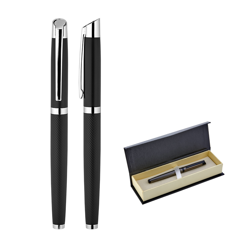 1111-KR Siyah-Silver Klips Metal Roller Kalem Seti
