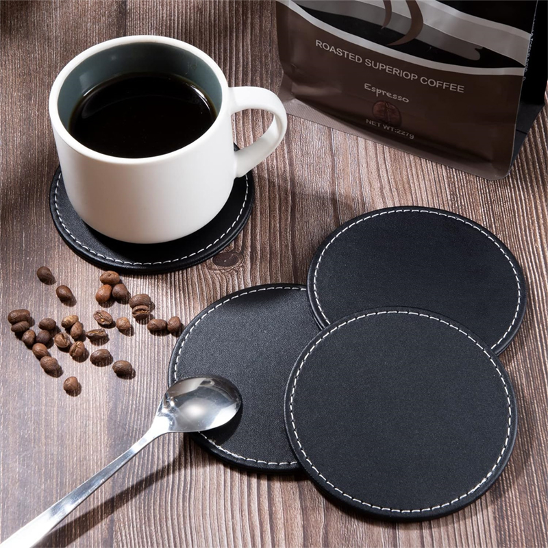 5879 Siyah Deri Bardak Altlığı