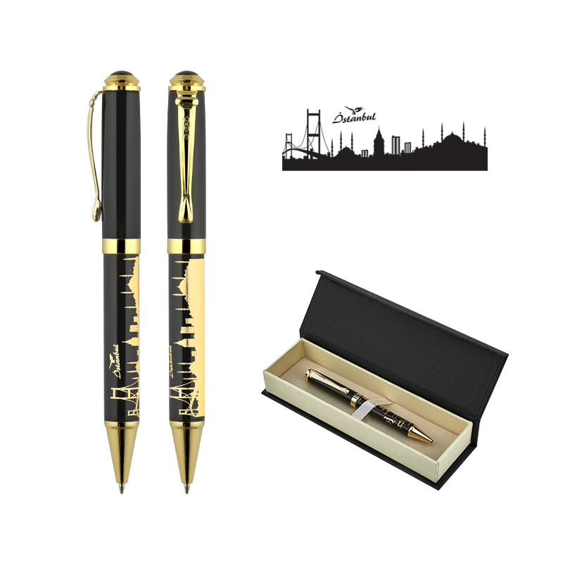 685-KT İstanbul Kabartma Figürlü Metal Tükenmez Kalem Seti